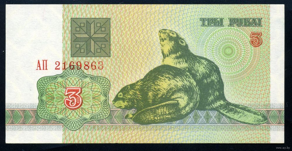 Беларусь. 3 рубля образца 1992 года. Серия АП. UNC