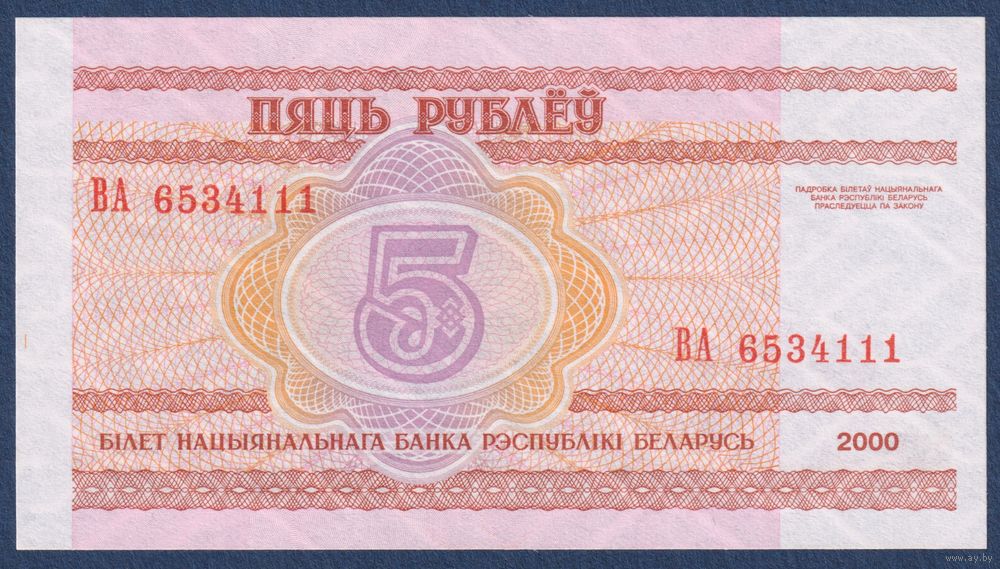 Беларусь, 5 рублей 2000 (2000) г., P-22 (ВА, первая серия), UNC