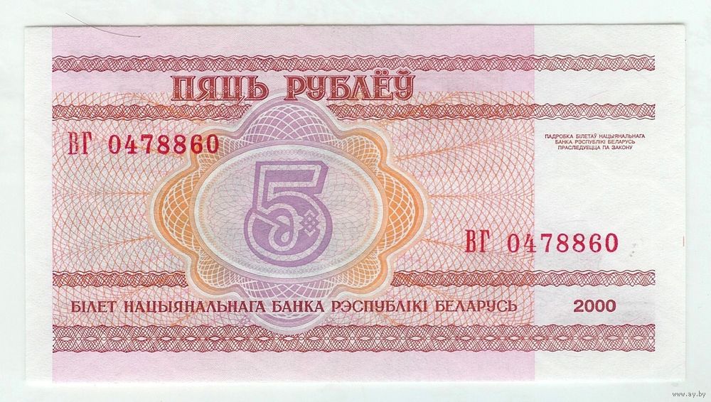Беларусь 5 рублей 2000 год, серия ВГ. UNC