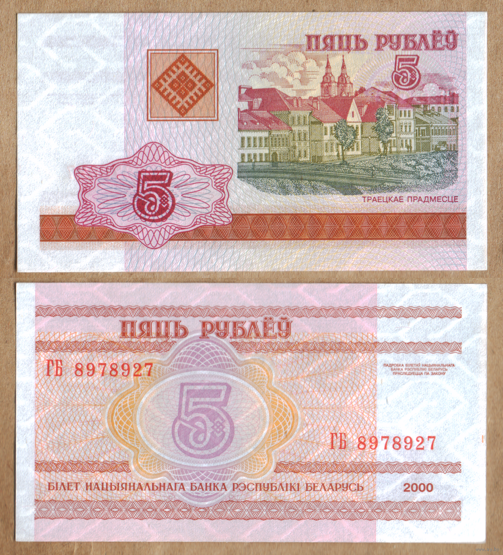 Беларусь 5 рублей 2000 серия ГБ