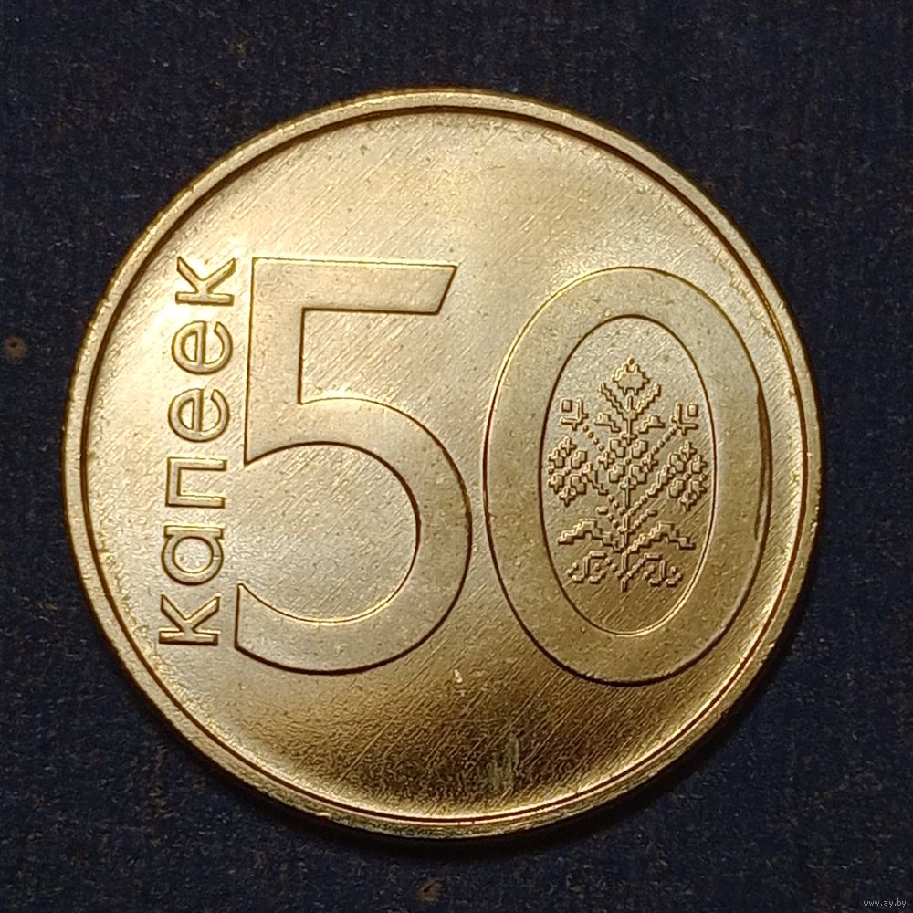 Беларусь 50 копеек 2009 брак, засорение штемпеля