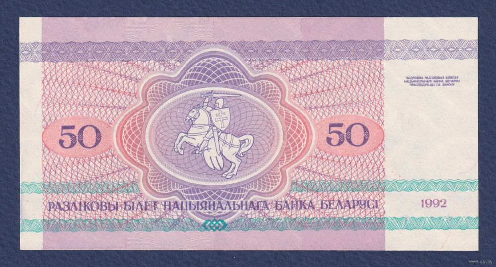 Беларусь, 50 рублей 1992 г, P-7 (АГ, медведь, водяной знак г2), UNC