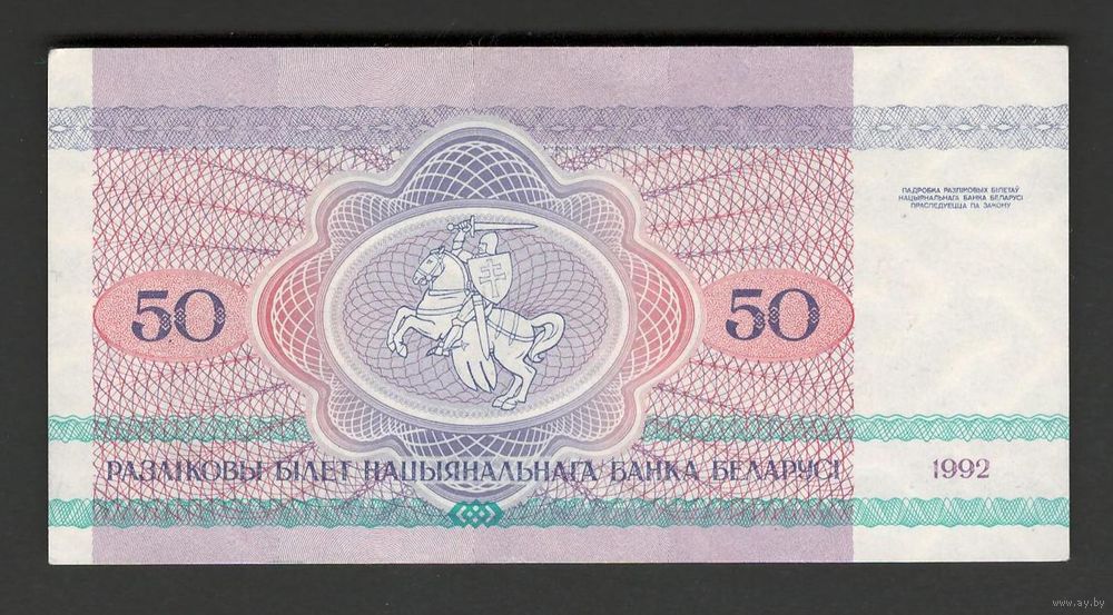 Беларусь 50 рублей 1992 года. Серия АБ. Состояние aUNC+!