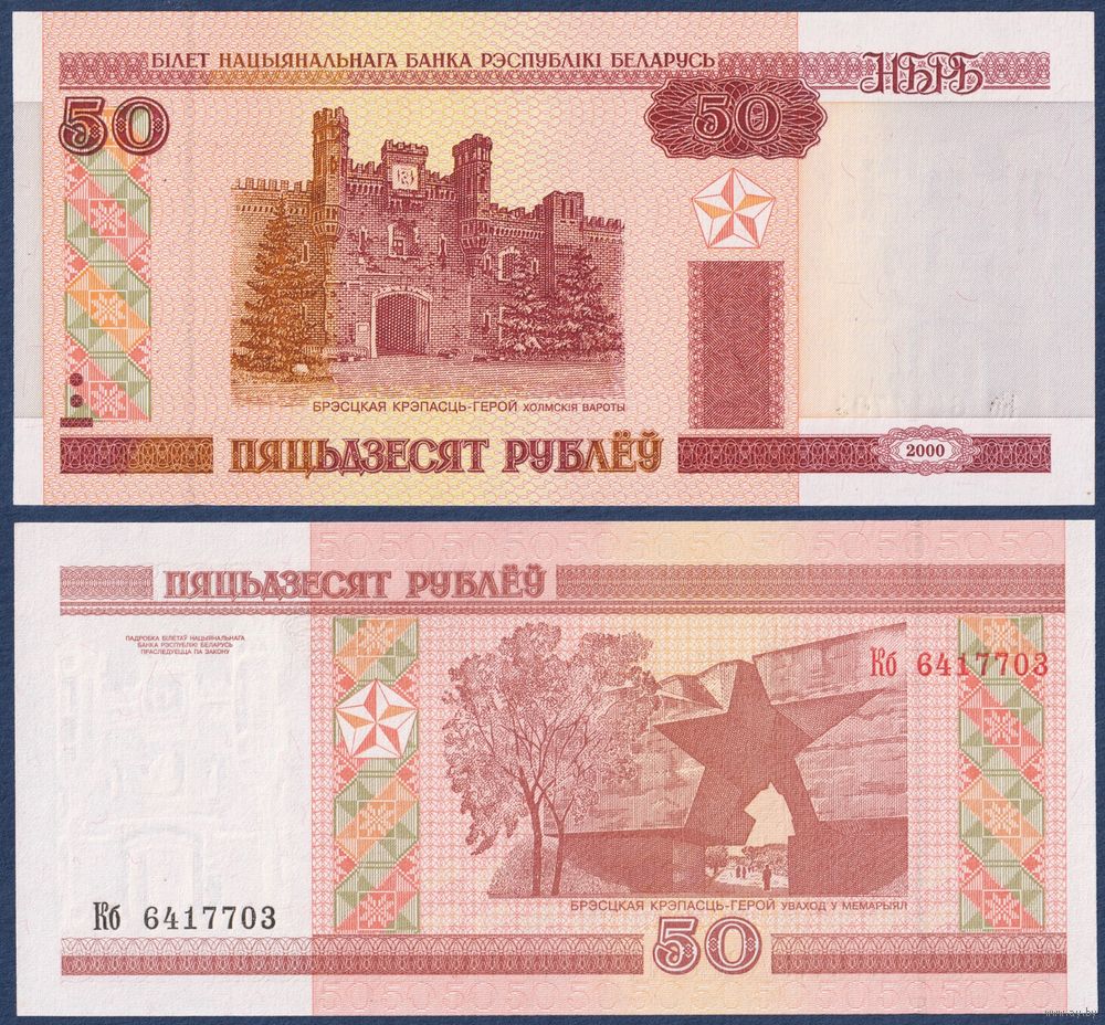 Беларусь, 50 рублей 2000 (2001) г, P-25a (серия Кб), UNC