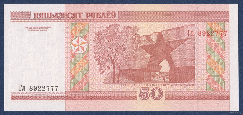 Беларусь, 50 рублей 2000 (2003) г, P-25a (серия Гл), UNC