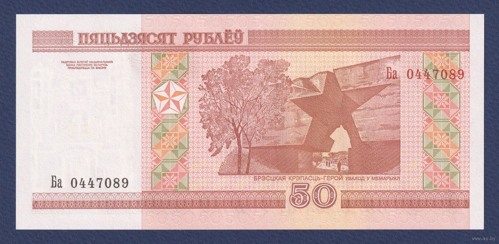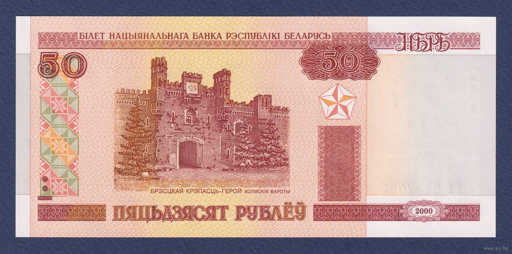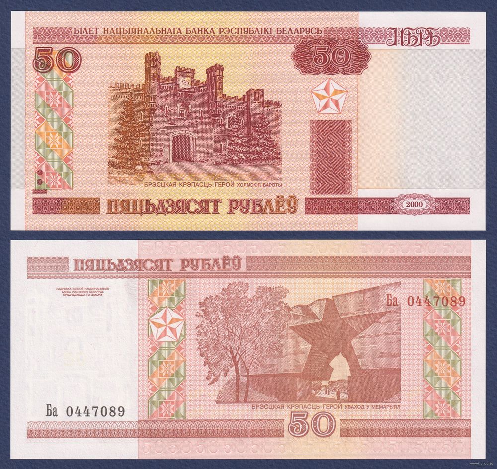 Беларусь, 50 рублей 2000 (2010) г., P-25b (серия Ба, первая после модификации), UNC