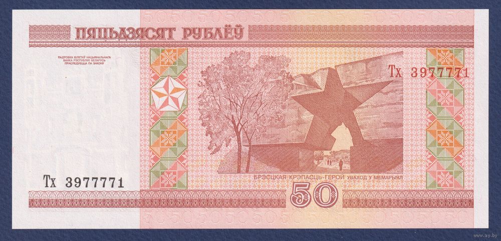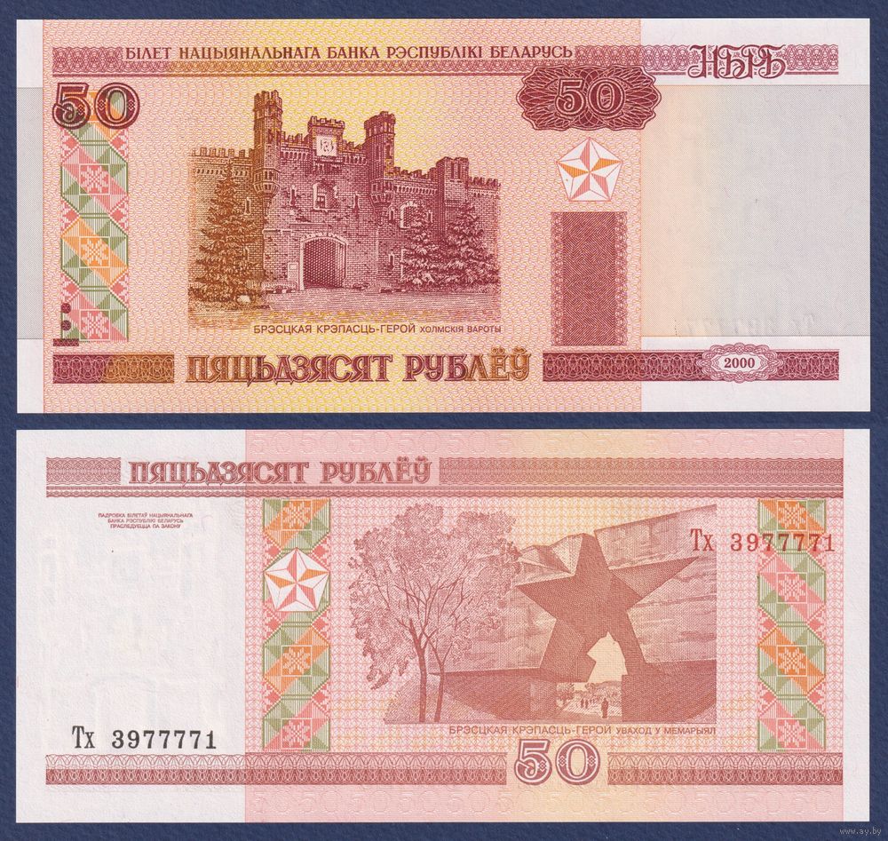 Беларусь, 50 рублей 2000 (2011) г, P-25b (серия Тх, пяцьдзЯсят), UNC