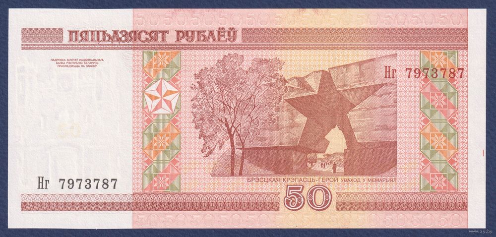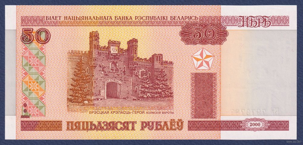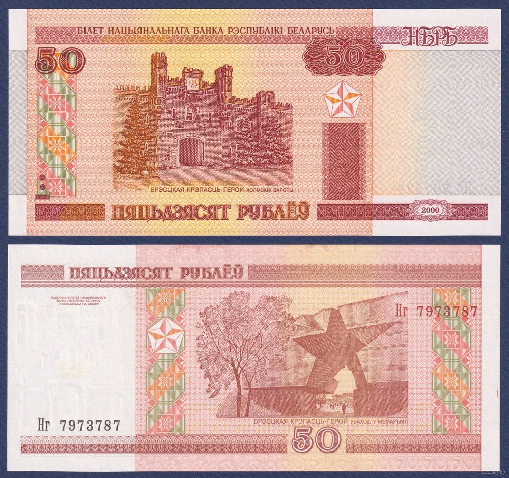 Беларусь, 50 рублей 2000 (2013) г., P-25b (серия Нг, пяцьдзЯсят), UNC