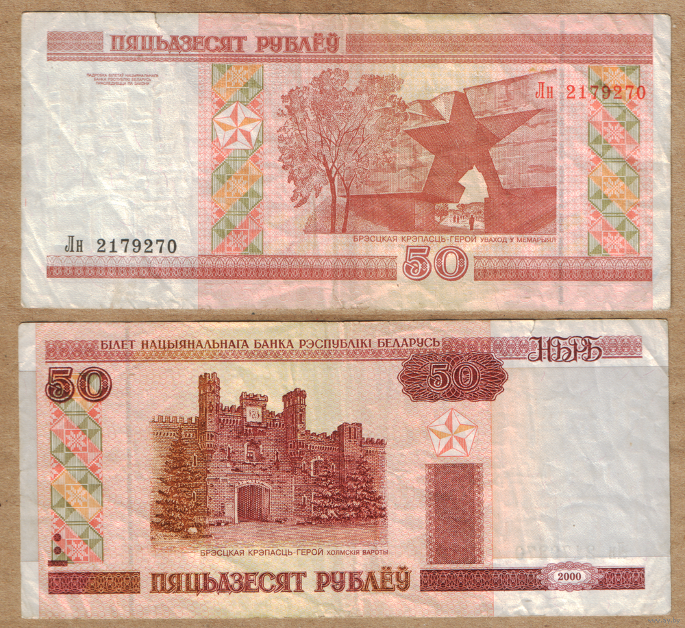 Беларусь 50 рублей 2000 серия Лн