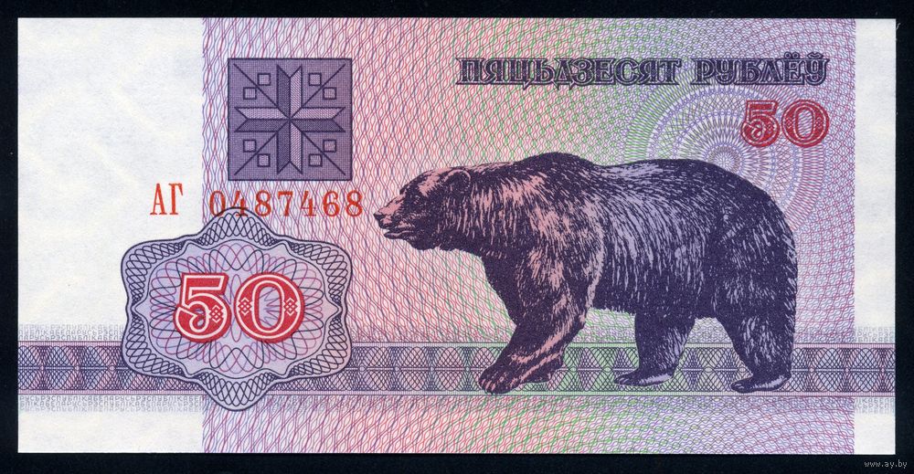 Беларусь. 50 рублей образца 1992 года. Серия АГ. UNC