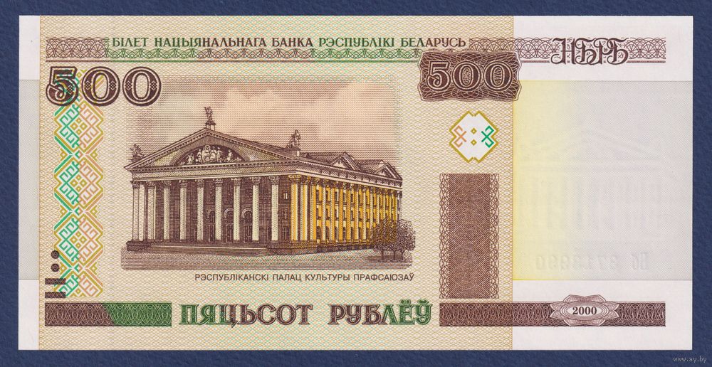 Беларусь, 500 рублей 2000 (2010) г., P-27a (серия Бб, до модификации), UNC