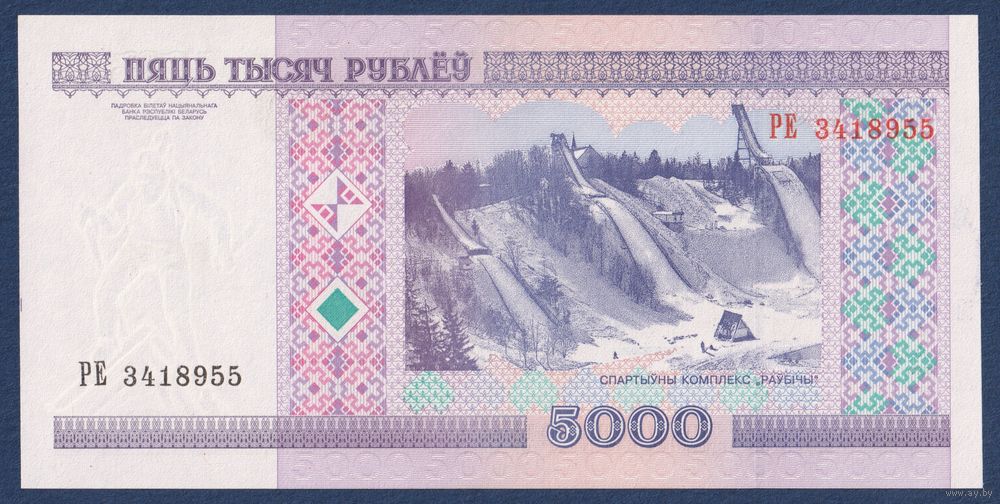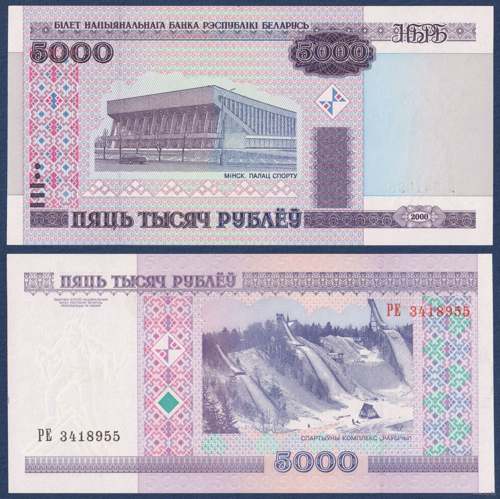 Беларусь, 5000 рублей 2000 (2002) г, P-29a (серия РЕ), UNC