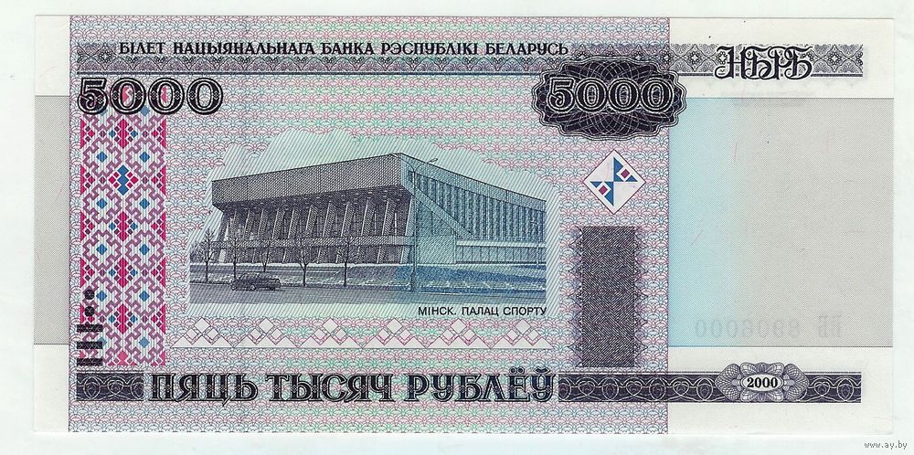 Беларусь, 5000 рублей 2000 год, серия ВБ, UNC.