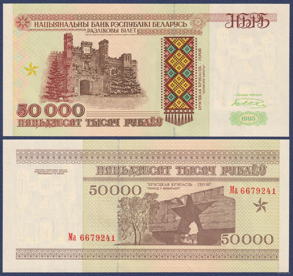 Беларусь, 50000 рублей 1995 г., P-14a (серия Ма), UNC