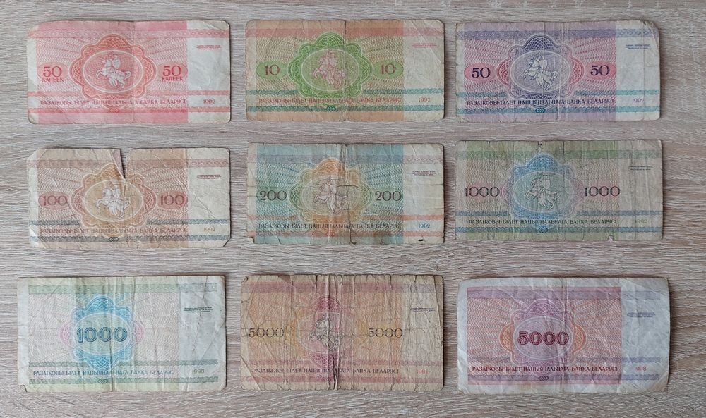 Беларусь, 9 банкнот, 1992-1998
