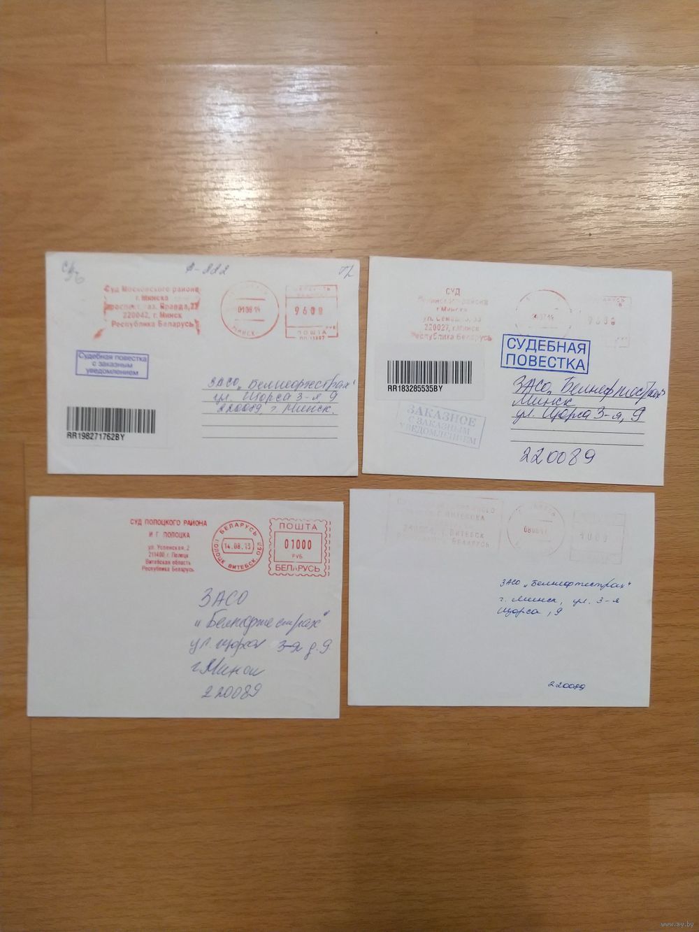 Беларусь 9 конвертов из судов различных областей с франкатурный и штемпелями все разные