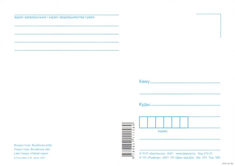 Беларусь Белпошта 2021 озеро Усая Витебская область