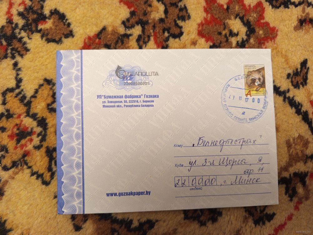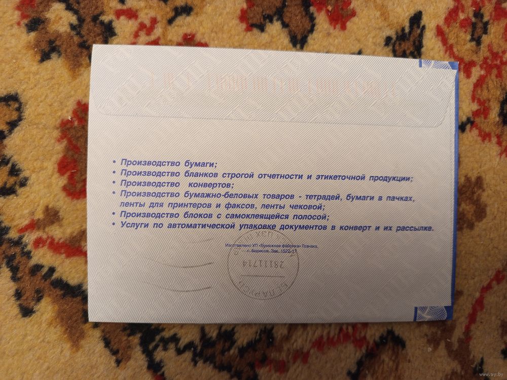 Беларусь фирменный конверт от УП Бумажная фабрика Гознака Борисов