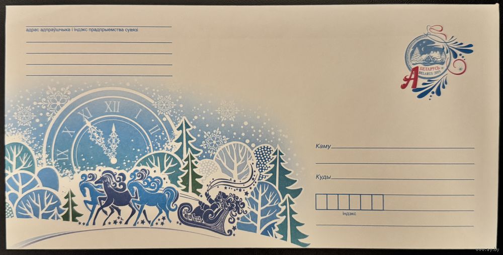 Беларусь ХМК 2015 Дед Мороз на тройке лошадей. Часы.