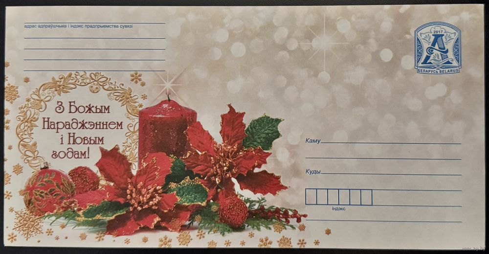 Беларусь ХМК 2017 С Рождеством и Новым годом! Свеча, ёлочные украшения.