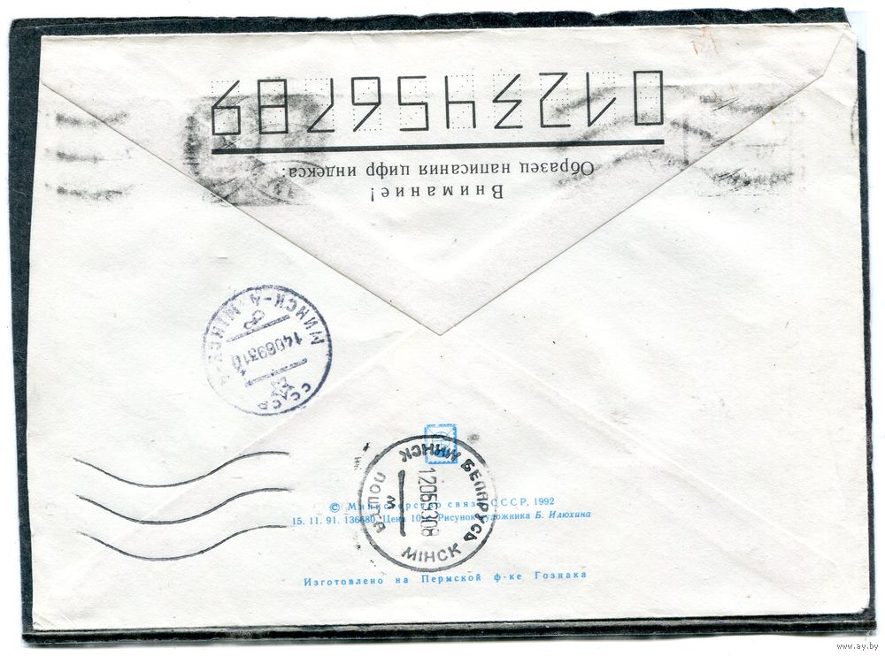 Беларусь. ХМК. Конверт п.п. Провизорий. Гашение Бобруйск 1993