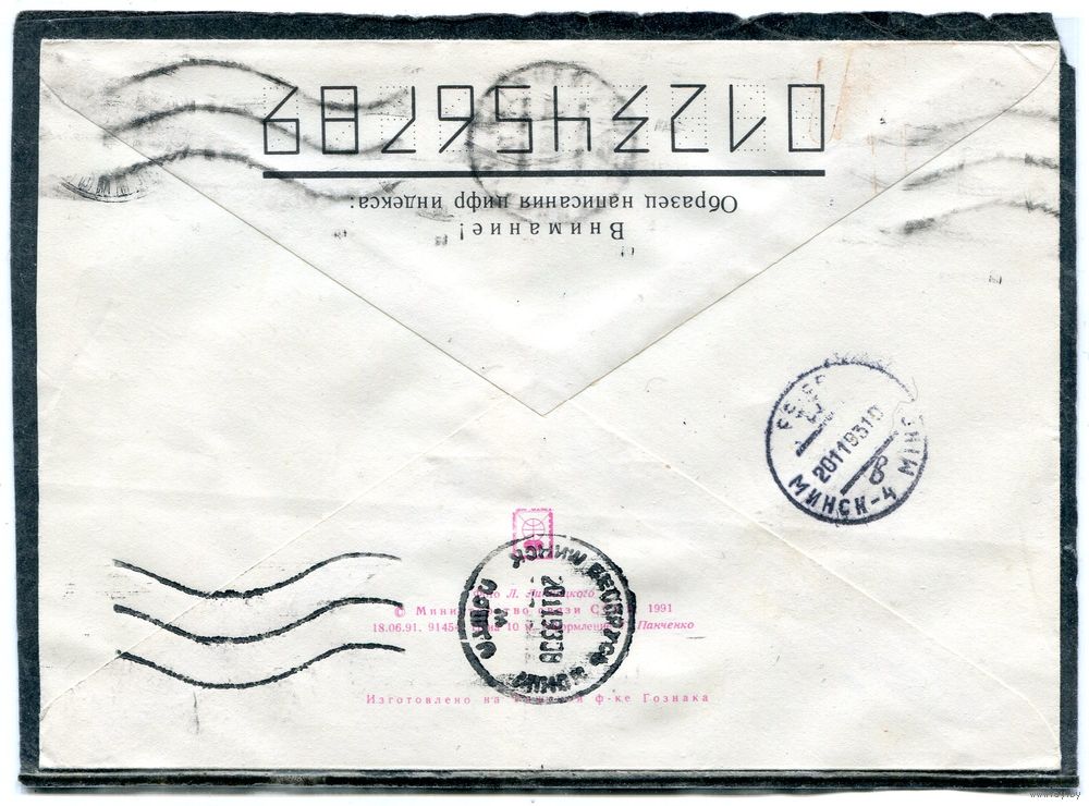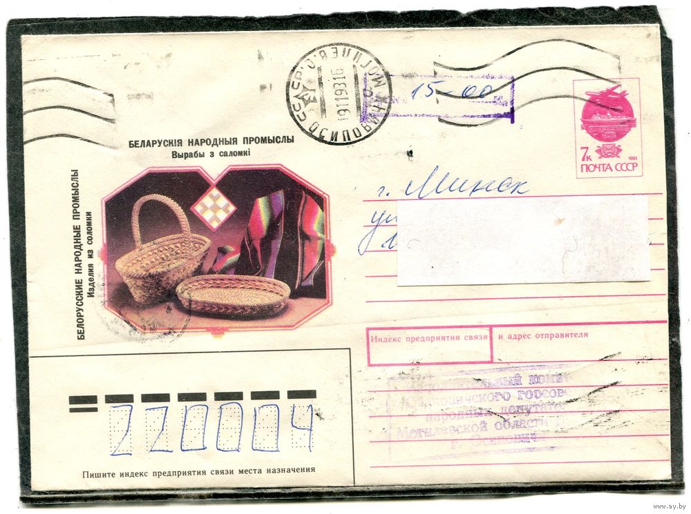 Беларусь. ХМК. Конверт п.п. Провизорий. Гашение Осиповичи 1993
