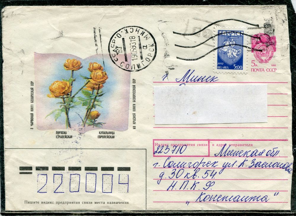Беларусь. ХМК. Конверт п.п. Провизорий. Гашение Солигорск 1993