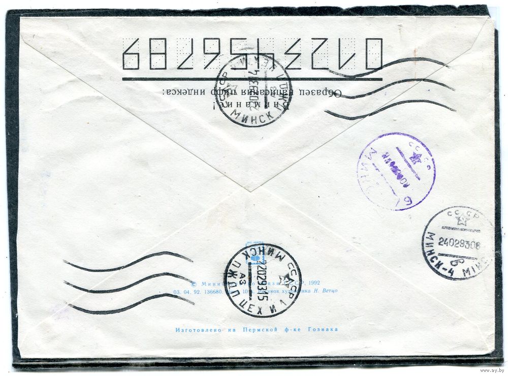 Беларусь. ХМК. Конверт п.п. Провизорий. Гашение Узда 1993