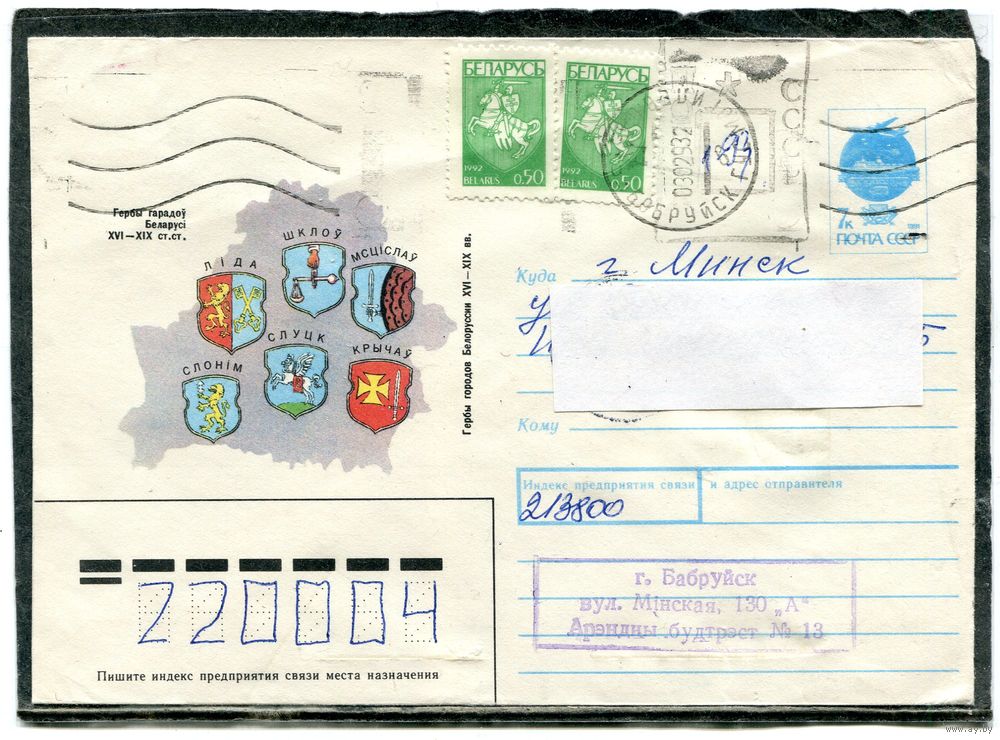 Беларусь. ХМК. Конверт п.п. Провизорий. Гербы городов. Гашение Бобруйск 1993