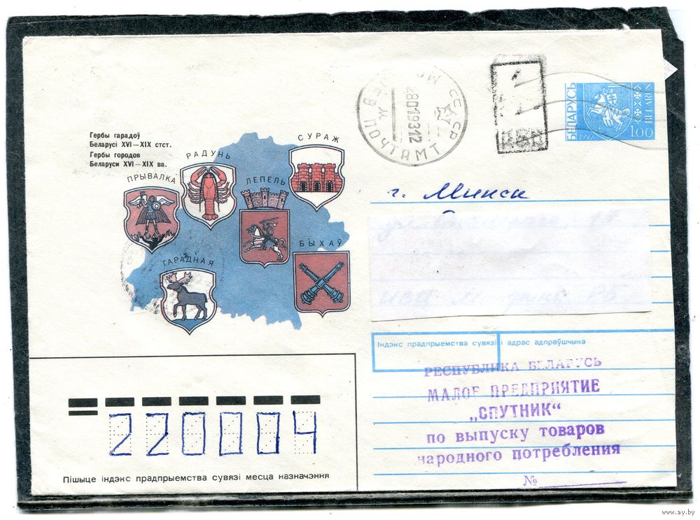 Беларусь. ХМК. Конверт п.п. Провизорий. Гербы городов. Гашение Могилев 1993