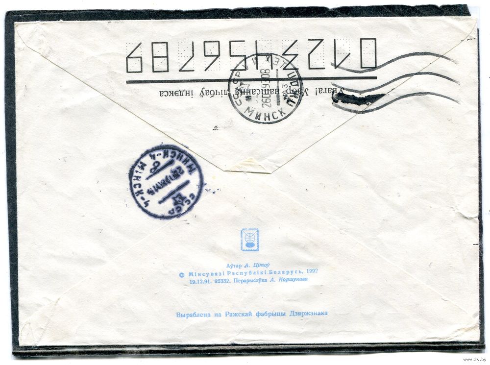 Беларусь.ХМК. Конверт п.п. Провизорий. Гербы городов. Гашение Могилев 1993