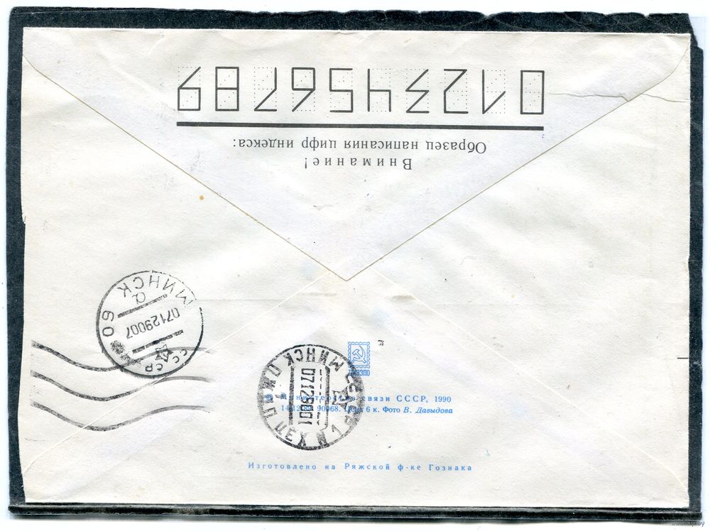 Беларусь ХМК. Конверт п.п. Провизорий. Пейзаж. Гашение Слуцк 1993