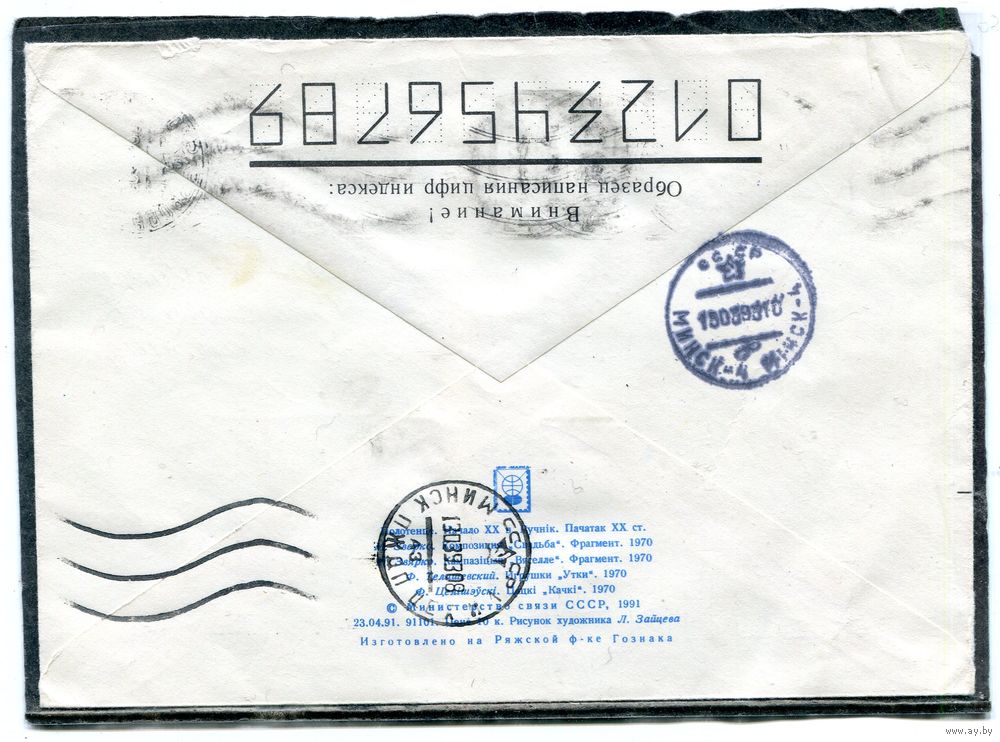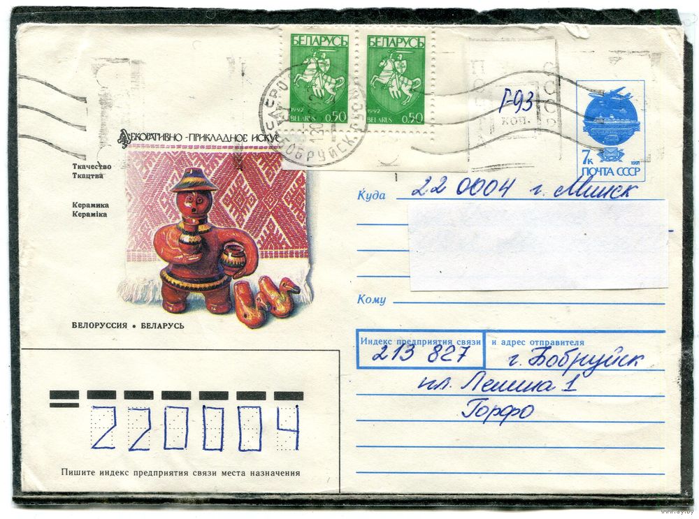 Беларусь. ХМК. Конверт п.п. Провизорий. Прикладеон искусство. Гашение Бобруйск 1993