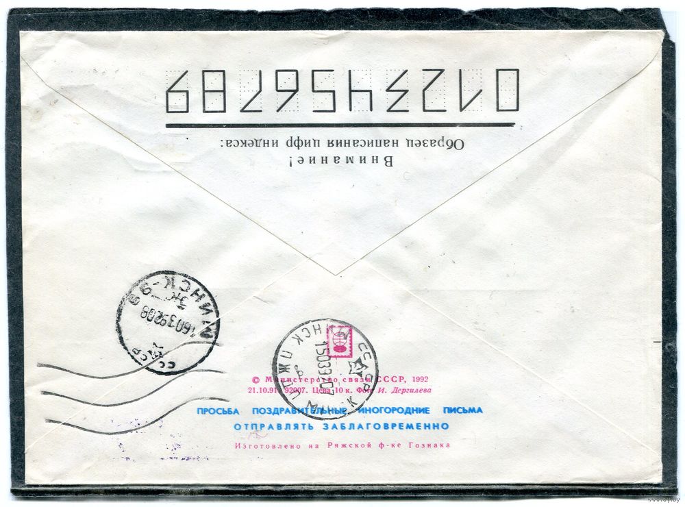 Беларусь. ХМК. Конверт п.п. Провизорий. С праздником. Гашение Новополоцк 1992