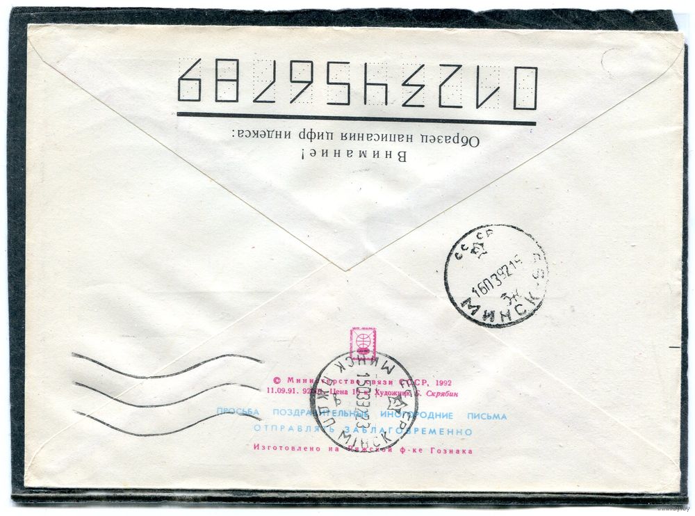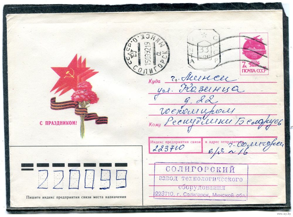 Беларусь. ХМК. Конверт п.п. Провизорий. С праздником. Гашение Солигорск 1992