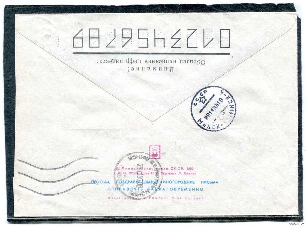 Беларусь. ХМК. Конверт п.п. Провизорий. С праздником Победы. Гашение Россоны, Витебской области 1993