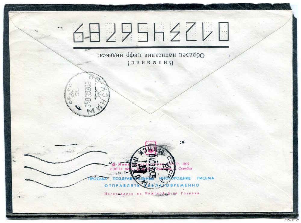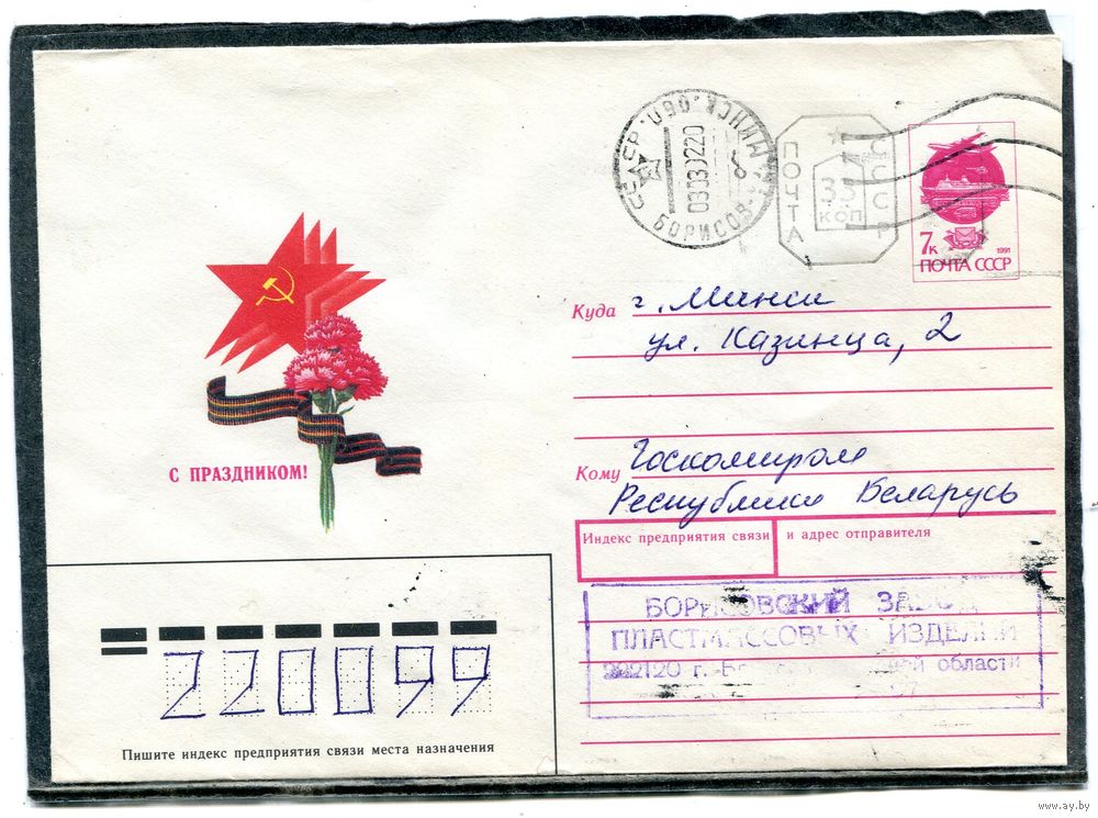 Беларусь. ХМК. Конверт п.п. С праздником. Гашение Борисов 1992
