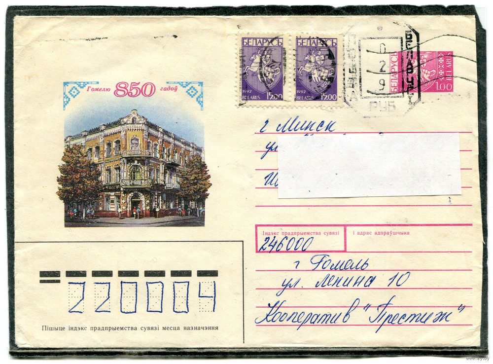 Беларусь. ХМК. Конверт п.п. Штемпель переоценки. Провизорий. Гашение Гомель 1994