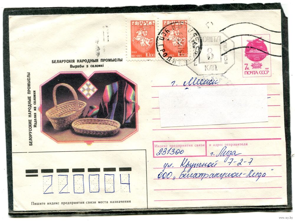 Беларусь. ХМК. Конверт п.п. Штемпель переоценки. Провизорий. Гашение Лида 1993