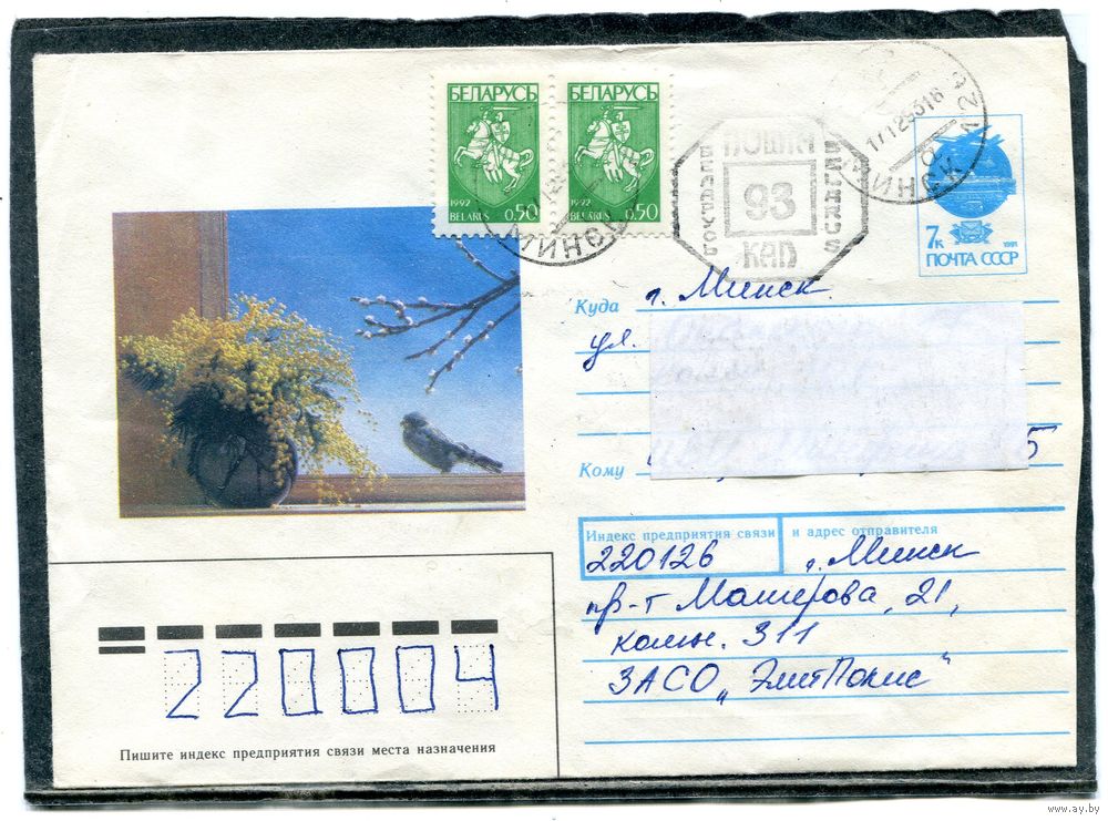 Беларусь. ХМК. Конверт п.п. Штемпель переоценки. Провизорий. Гашение Минск 1993