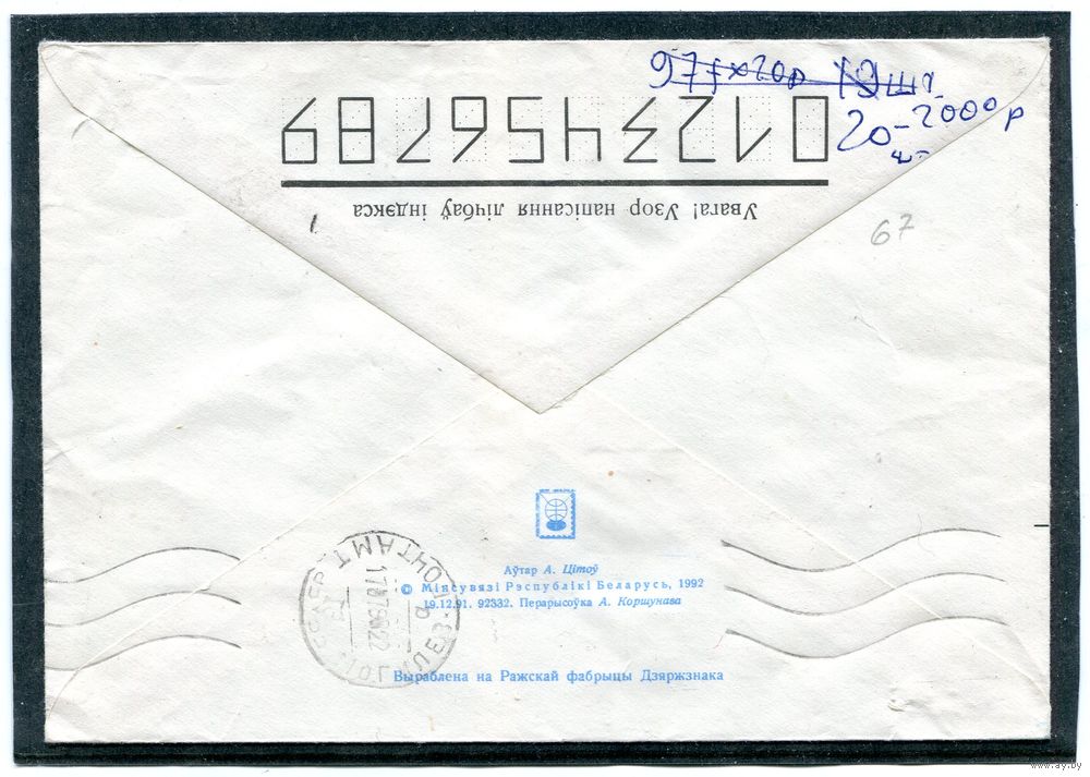 Беларусь. ХМК. Конверт п.п. Штемпель переоценки. Провизорий. Гербы городов. Гашение Минск 1993