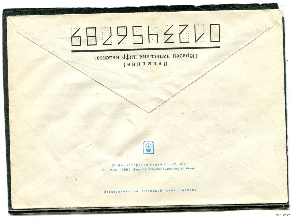 Беларусь. ХМК. Конверт п.п. Штемпель переоценки. Провизорий. Музей. Гашение Минск 1991