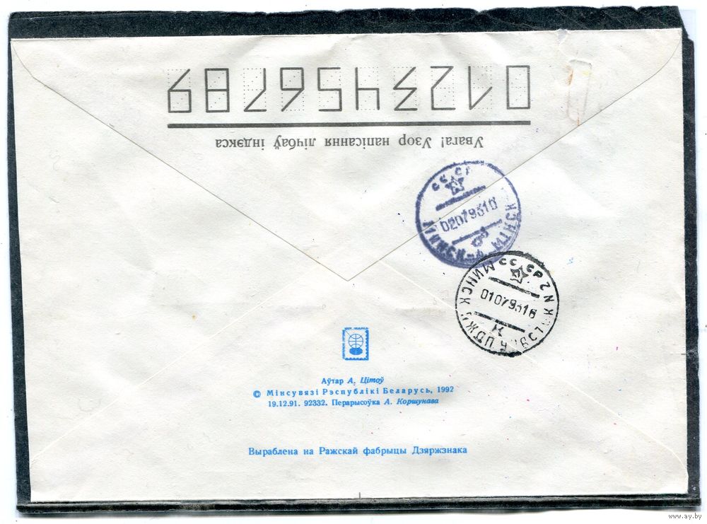 Беларусь. ХМК. Конверт п.п. Штемпель переоценки. Заказное. Провизорий Гербы городов. Гашение Могилев 1993