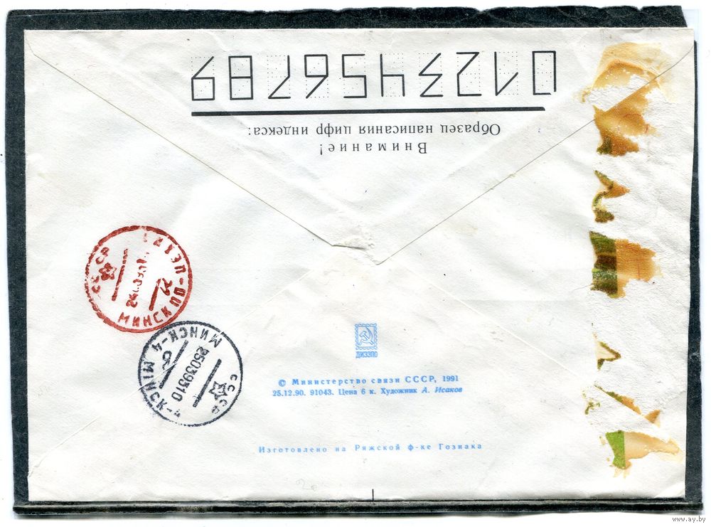 Беларусь. ХМК. Конверт п.п. Заказное. Провизорий. Бабочка. Гашение Витебск 1993