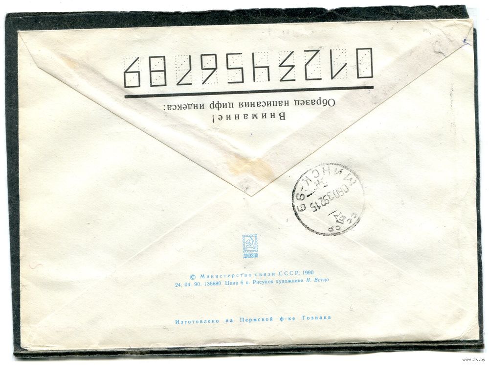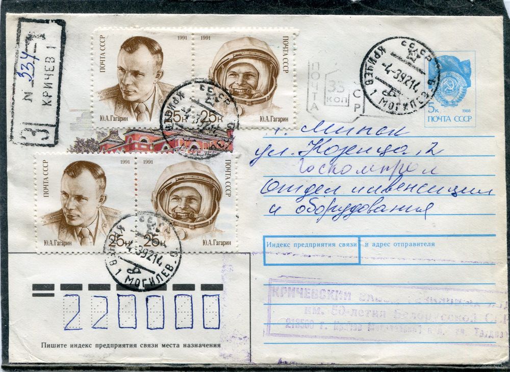 Беларусь. ХМК. Конверт п.п. Заказное. Провизорий. Гашение Кричев 1992
