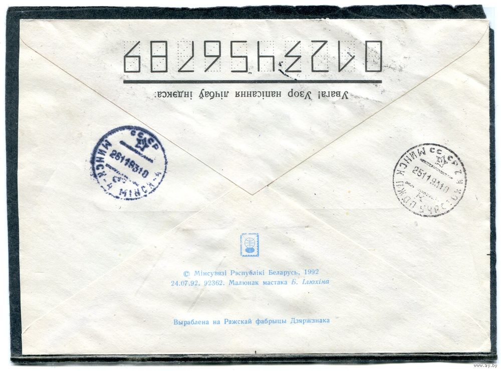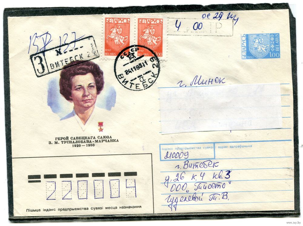 Беларусь. ХМК. Конверт п.п. Заказное. Провизорий. Гашение Витебск 1993