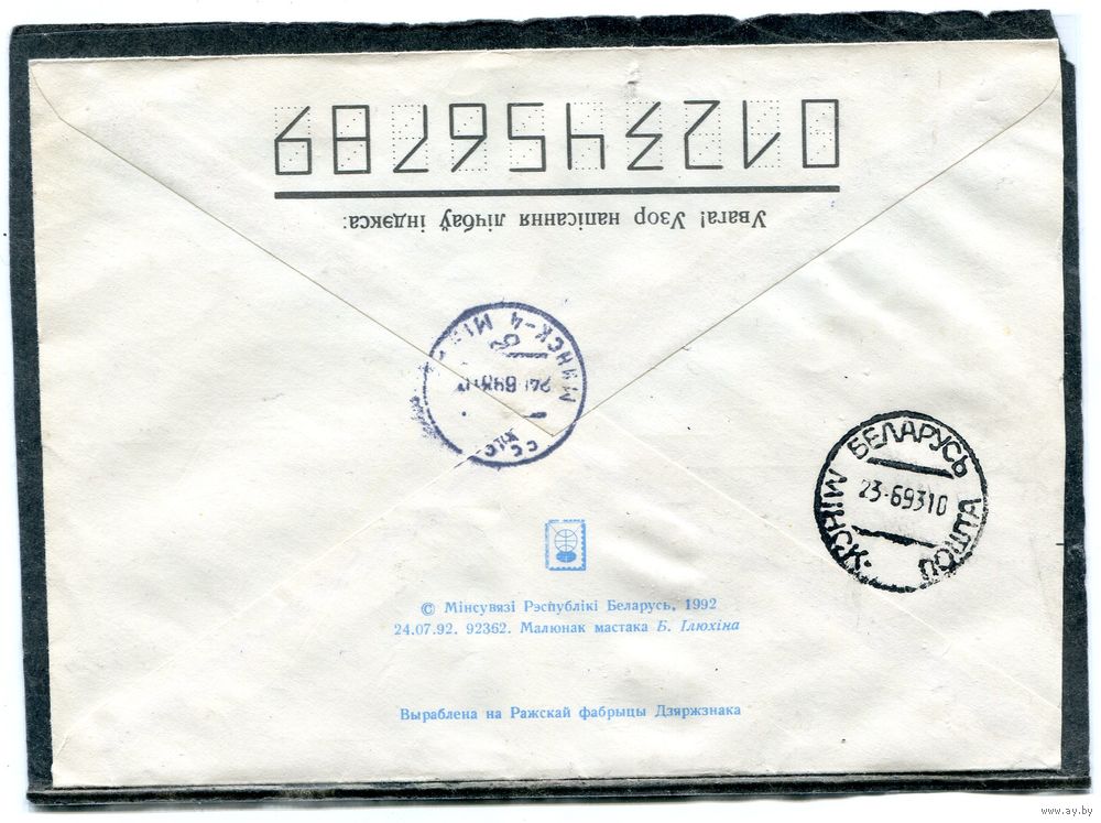 Беларусь. ХМК. Конверт п.п. Заказное. Провизорий. Гашение Витебск 1993