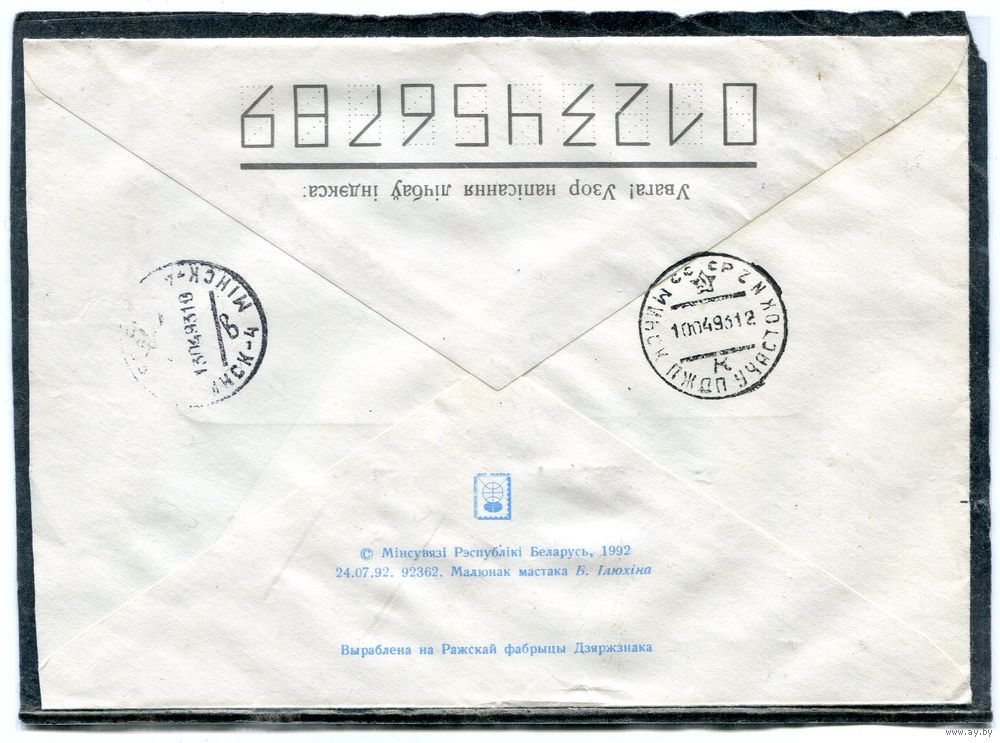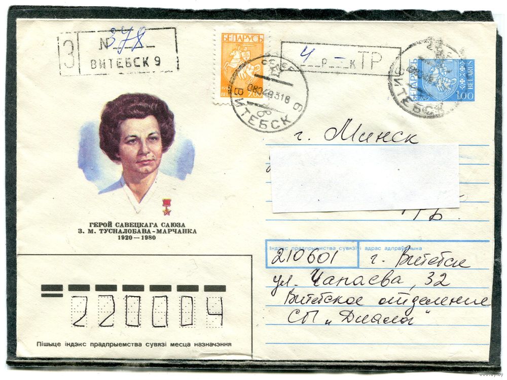 Беларусь. ХМК. Конверт п.п. Заказное. Провизорий. Гашение Витебск 1993