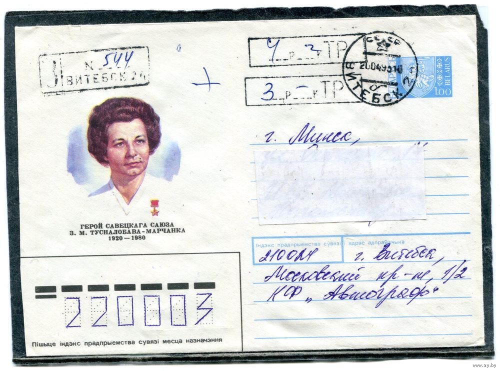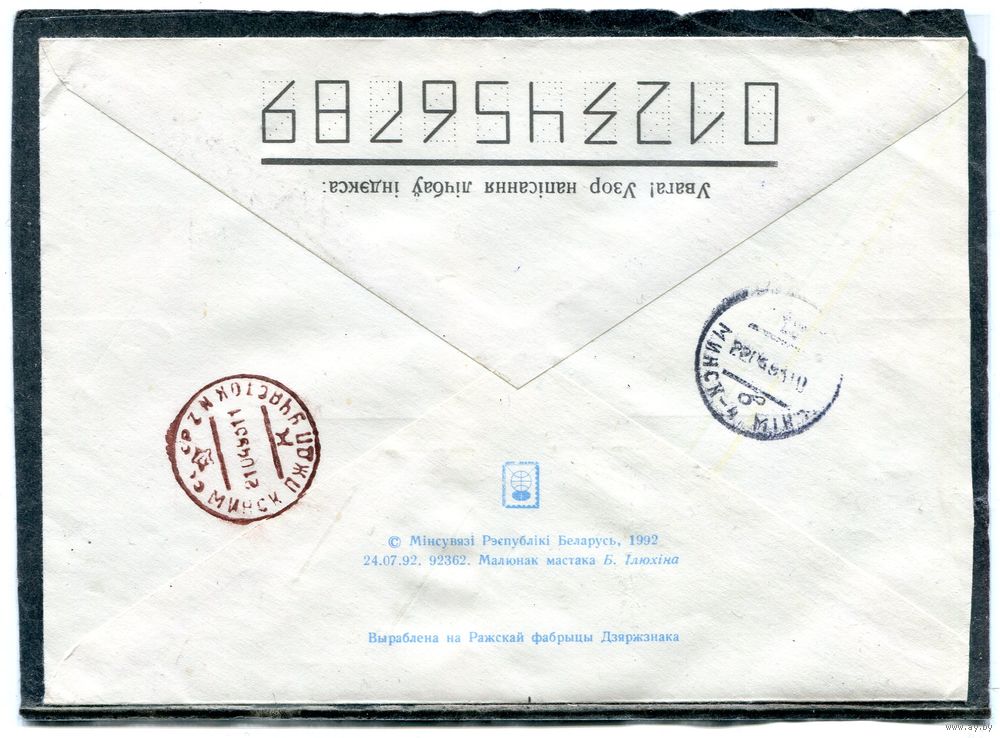 Беларусь. ХМК. Конверт п.п. Заказное. Провизорий. Гашение Витебск 1993