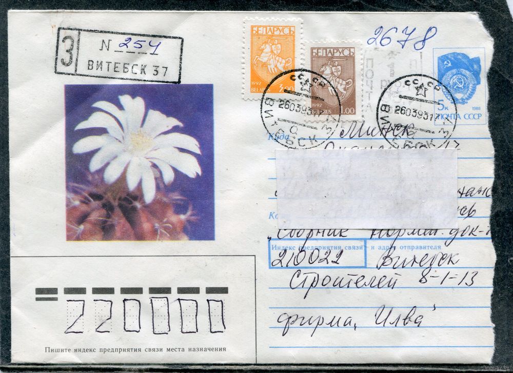 Беларусь. ХМК. Конверт п.п. Заказное. Провизорий. Кактус. Гашение Витебск 1993